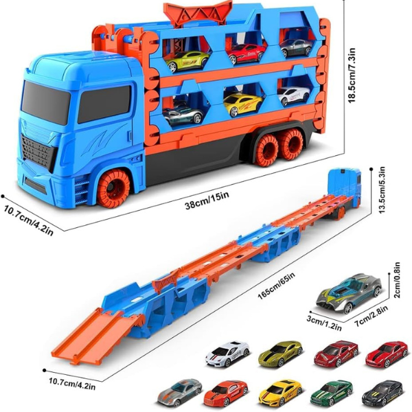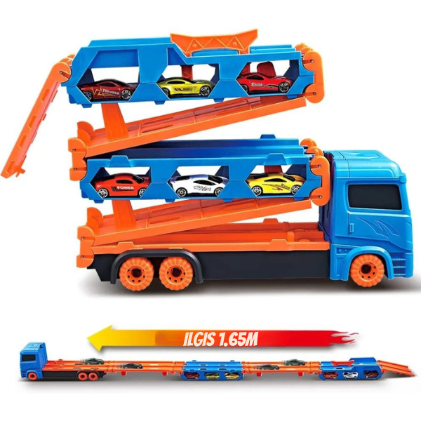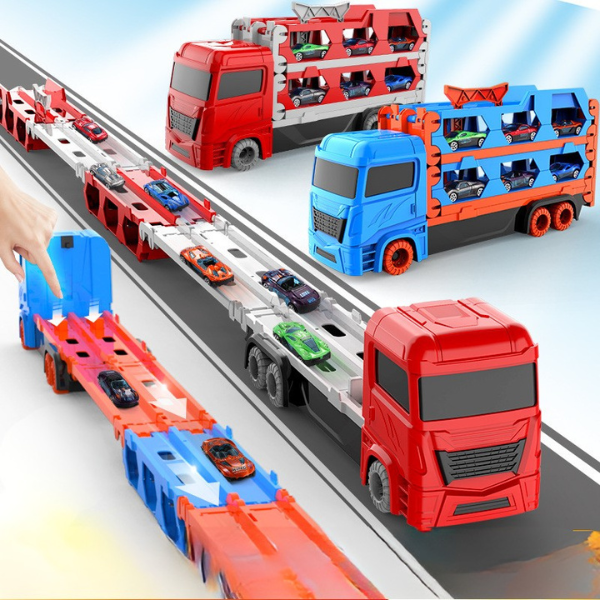 👉 Padovanok vaikui žaidimą, kuris niekada nepabosta – Automobilis–vilkikas su sulankstoma lenktynių trasa taps mėgstamiausiu žaislu namuose ir kelionėse!