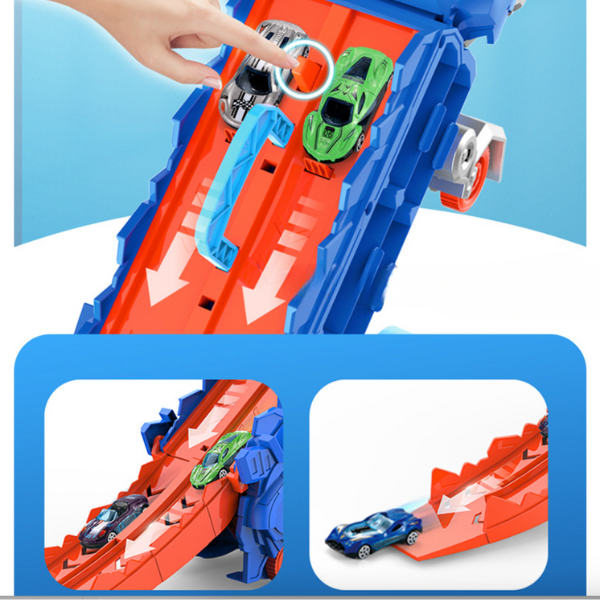 Ar tavo mažyliui patinka dinozaurai ir mašinėlės? Šis žaislas sujungia abu pasaulius – dinozaurinė žaislinė mašinatampa tikru nuotykių herojumi! Vaikai gali leisti mažas mašinėles riedėti, jas „praryti“ ir vėl paleisti – linksmybės garantuotos.