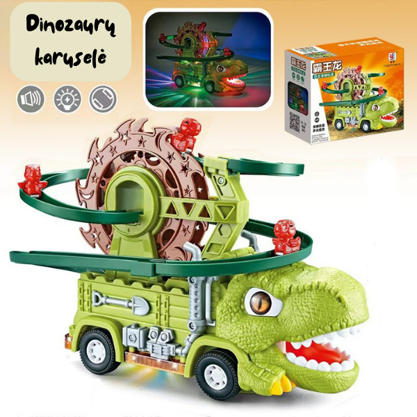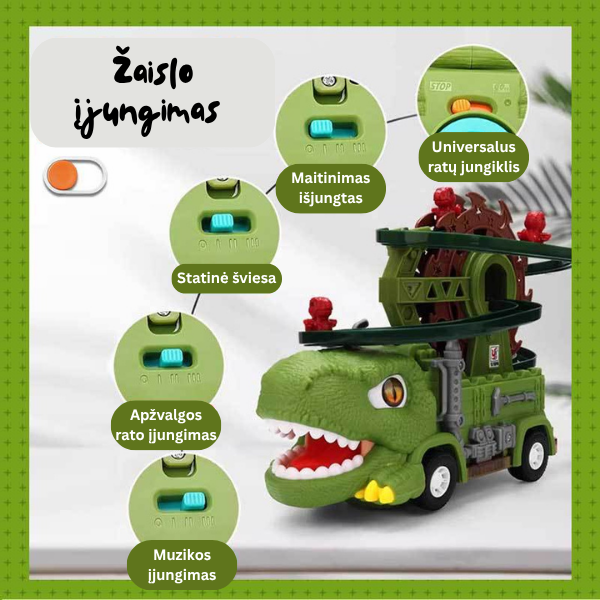 Elektrinė dinozaurų mašina su apžvalgos ratu ir čiuožykla - tikras nuootykis!