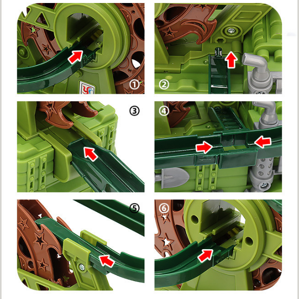 - Integruota čiuožykla suteikia papildomą pramogą ir skatina aktyvų žaidimą.