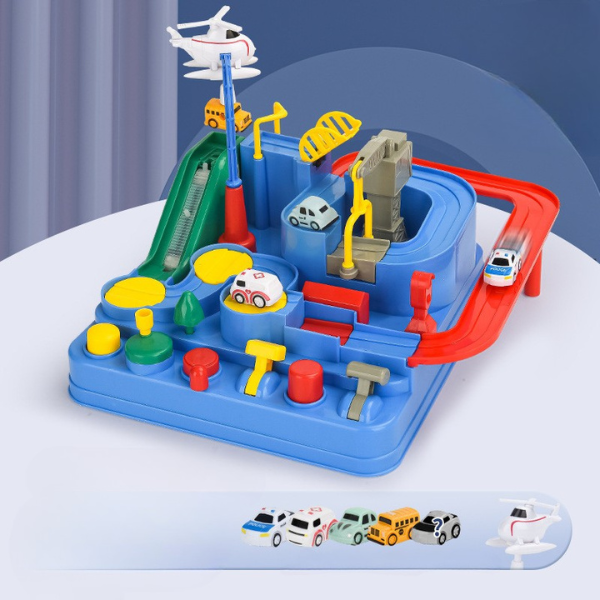 Ši interaktyvi automobilių trasa kviečia vaikus leistis į smagią miesto misiją – su svirtelėmis, mygtukais, kliūtimis ir nuotykiais!