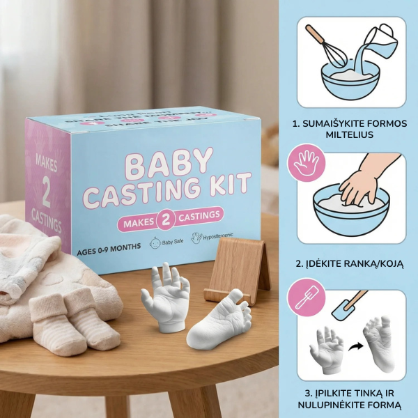 - Tipas: kūdikio atspaudų liejimo rinkinys