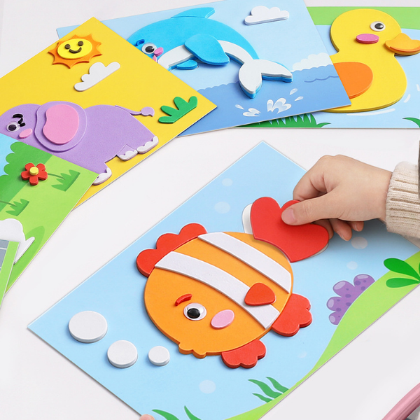 Kiekviename rinkinyje – spalvingi, bekvapiai EVA lipdukai, kuriuos mažieji gali klijuoti, derinti ir kurti 3D paveikslėlius: nuo dinozaurų ir miško gyvūnėlių iki princesių ar transporto priemonių.
