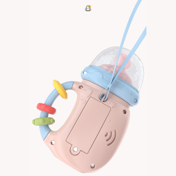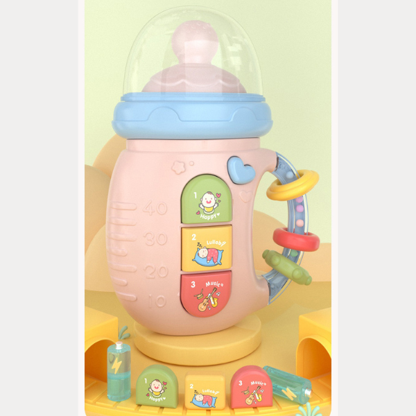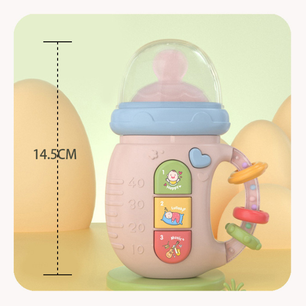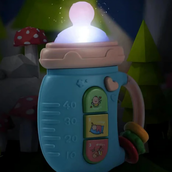 Raminantis pieno buteliuko formos barškutis su garsais ir šviesomis