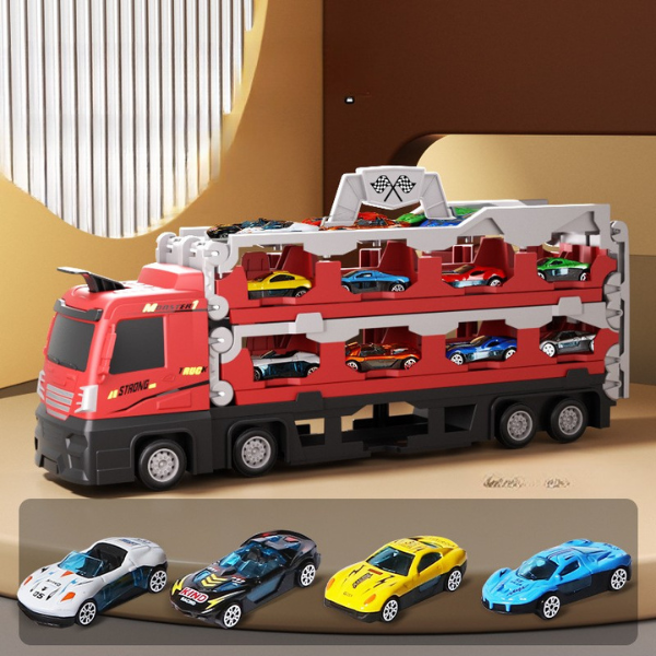 Šis vaikiškas lenktynių trasos sunkvežimis – tikras atradimų pasaulis smalsiems mažyliams. Patvarus lydinio sunkvežimis ne tik talpina automobiliukus, bet ir transformuojasi į įspūdingą trasą, iš kurios mašinėlės iššauna viena po kitos! Tai ne tik smagus žaidimas, bet ir mokymasis per veiksmą.